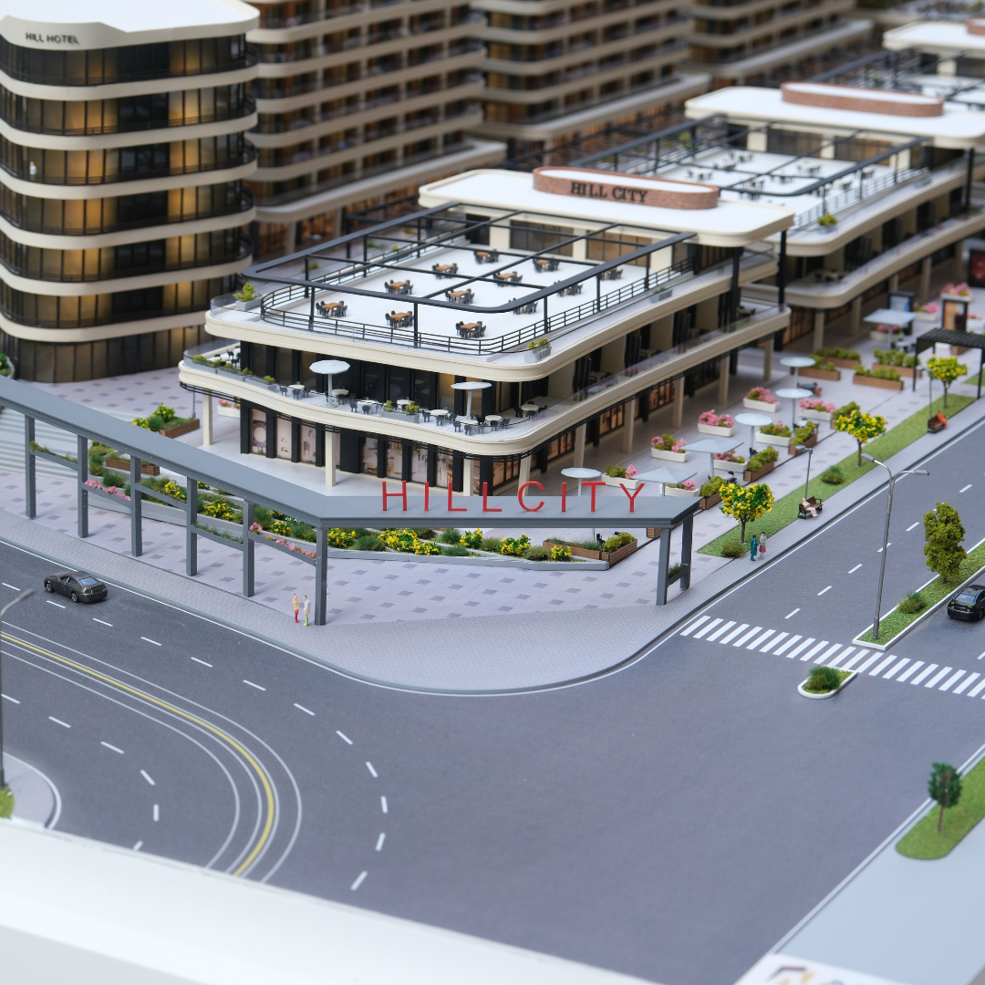 The 1:100 scale architectural model of Hill City Lifestyle Center was meticulously designed and produced by ARI Model. This detailed model perfectly represents the fusion of luxury, comfort, and functionality that defines the Hill City project.